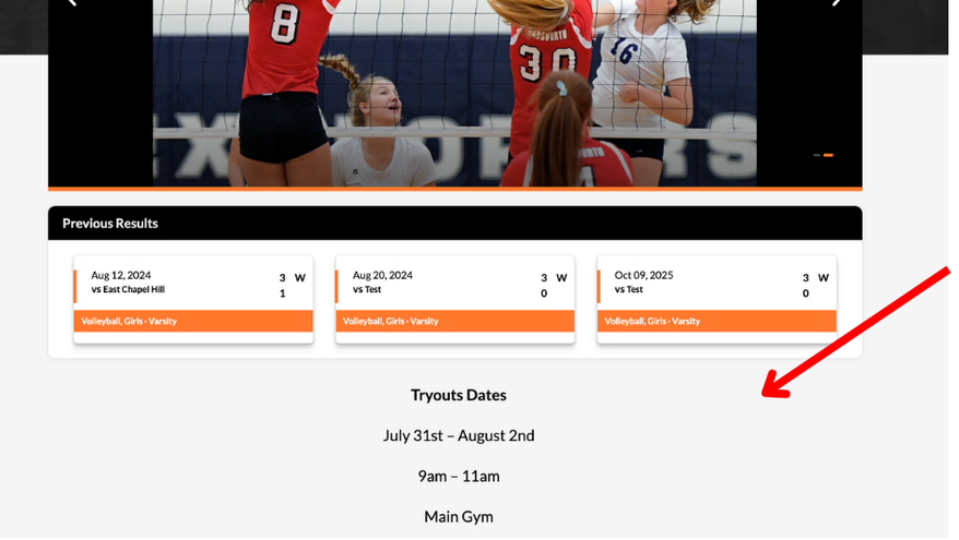 - Click on Varsity or Lower Teams in the left navigation bar and then click on the Team name or Edit.