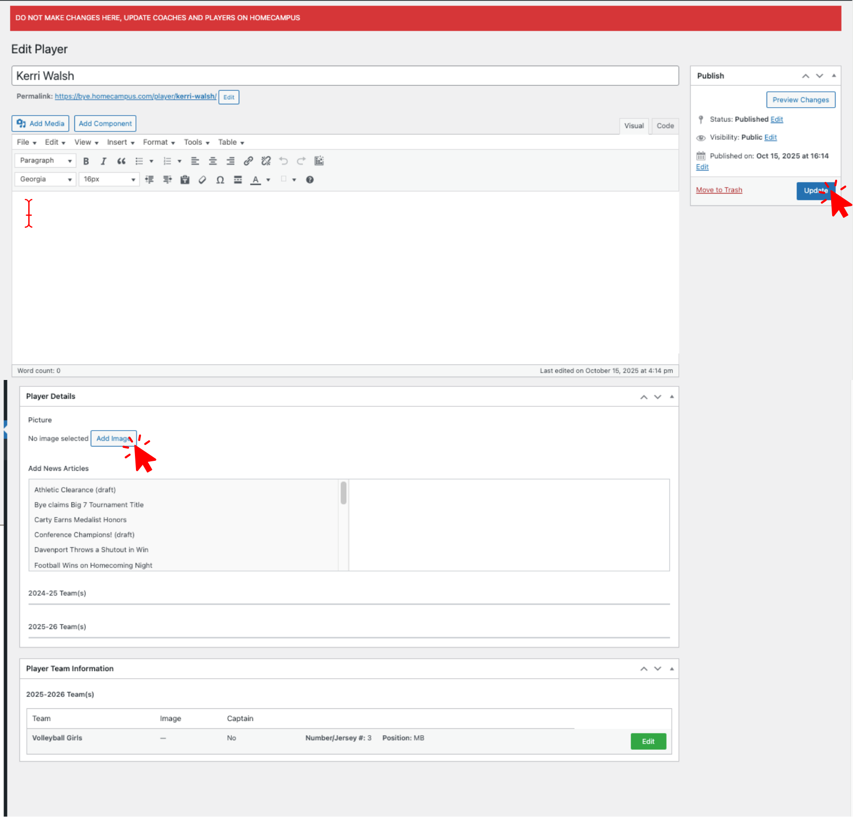 The Team Roster automatically pulls from Home Campus. Please enter all Roster Information in Home Campus.