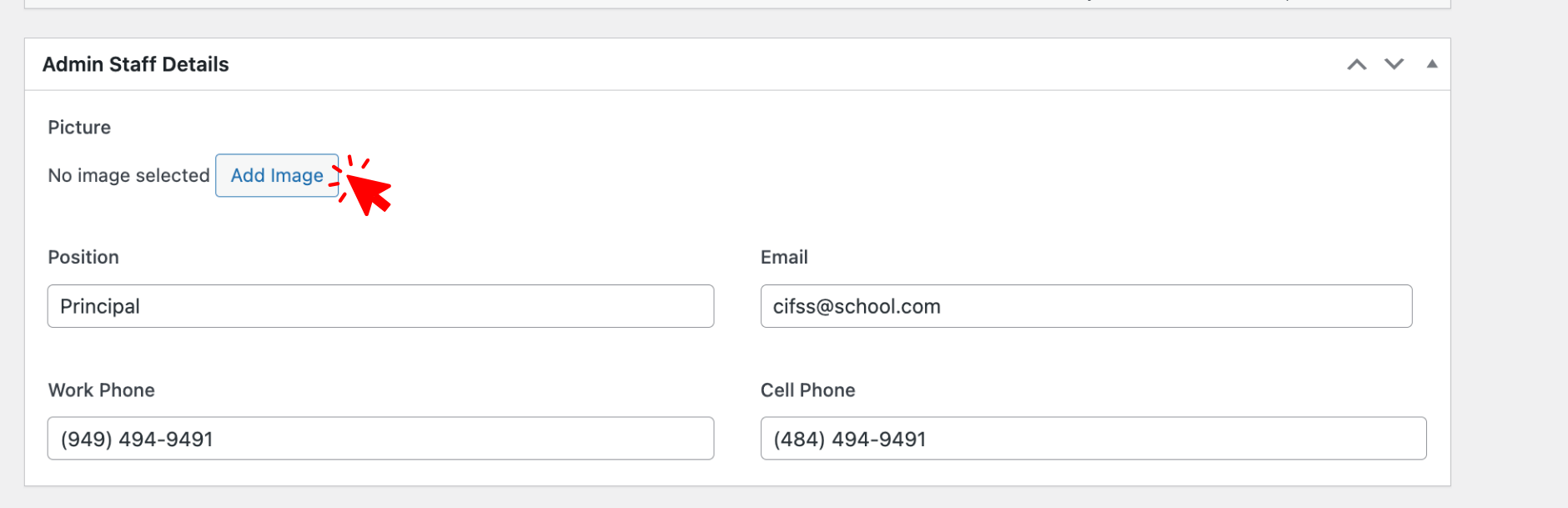 - Under details click Add Image to add a headshot
